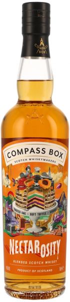 Klebrige, süffige und fruchtige Süße steht dagegen im Fokus der brandneuen Abfüllung Nectarosity. Aus teils eigens angefertigten Bourbon- und Sherryfässern, unter anderem befüllt mit Single Malt und Grain von Linkwood und Cameronbridge, entsteht ein Erlebnis, bei dem Whisky auf Patisserie trifft. Honig und saftige Aprikose werden dabei von Vanille und Karamellsoße abgelöst, die in einen anhaltenden Geschmack von Zimtschnecken münden.